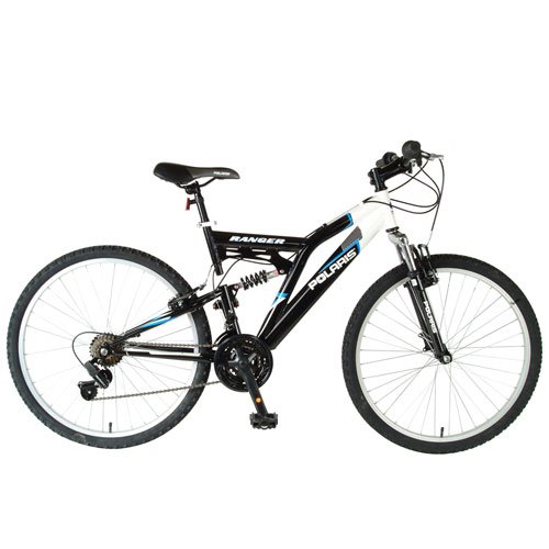 The Polaris Ranger combines a Shimano¿ 21-speed drive-train, front and rear V-brakes, Alloy rims and knobby all-terrain tires, all mounted to a sturdy steel dual-suspension frame to make a winning combination. Available in 26" wheel and 24" wheel boys and girls styles.