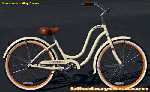 See all customer reviews...Aluminum frame, Fito Verona Alloy 1-speed Vanilla/Orange Women's Beach Cruiser Bike Bicycle Micargi Schwinn Nirve Firmstrong style. Reviewed by Sandy L. Rating: