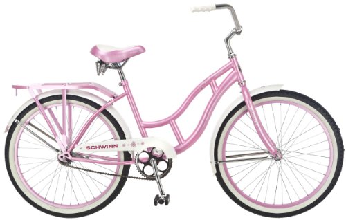 The Schwinn 24" Desting girl's is the perfect bike for crusing the neighborhood, bike path or just going out for a liesurly ride. Ewuipped with a Schwinn steel cruiser frame and fork for comfortable riding, the full fenders help keep the water off you in the rain and the rear rack can be used for carying cargo. The alloy wheel are lightweingth and strong and the wide cruiser saddle with large springs give this bike a comfortable ride.
