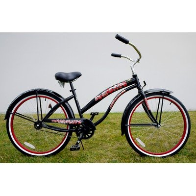 Women's Single Speed Premium Beach Cruiser Frame Color: Black with Red Wheels
