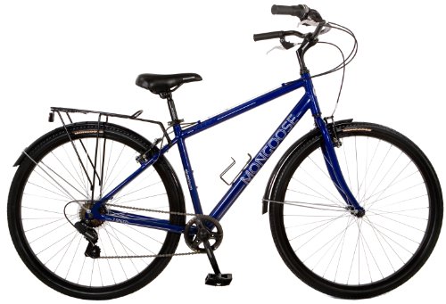 The Mongoose 700C men's XCom is the perfect commuter bike to ride around town, work or cruise on the bike trails. Equipped with a rugged aluminum commuter frame, Shimano 7 speed rear derailleur with SRAM twist trigger shifters for precise shifting. The front & rear linear pull brakes provide sure stoping while the alloy wheels are lightweight and durable. The rear rack and full fenders make this the perfect bike.
