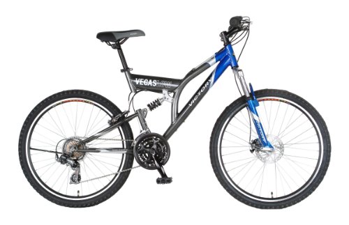 The Victory Vegas Low can take you down any trail and look good doing it! It has features like an alloy dual suspension frame, Shimano drivetrain, 21 speeds, front disc brake, double wall alloy rims, and quick release seat.