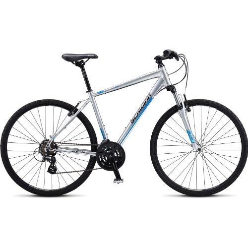 You've just laid eyes upon the most comfortable around-town bike you'll ever see. But the Schwinn Searcher women's bike isn't just about comfort, it's also go-getter with some serious performance chops. The lightweight aluminum frame and Suntour suspension frame make it capable of go-fast performance. The Shimano Altus and Tourney components deliver crisp, accurate shifting, and the women's specific geometry gives you a more comfortable, stable ride. Lightweight Schwinn Sport Hybrid triple-butted aluminum frame with Suntour M3010 suspension fork for a responsive, comfortable ride Shimano Altus and Tourney components for flawless shifting and long-term durability Schwinn S1 Sport Ergo saddle and Sport Ergo grips for hours of riding comfort Suntour triple crankset with chainguard lets you rack up the miles without chewing up your cuffs Shimano EF51 Easy Fire triggers make gear changes incredibly easy Schwinn Sport Ergo grips enhance control and riding comfort