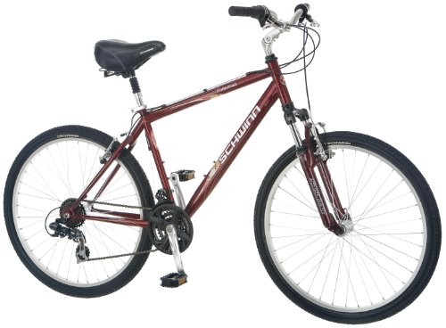 The Schwinn Miramar men's bike comes with a comfort geometry frame with a SR suspension fork to provide a smooth ride. The handlebar and adjustable alloy stem provide an upright riding position. Equipped with Shimano TZ 21 speed drive train with SRAM twist grip shifting for quick smooth shifts Alloy linear pull brakes stop precisely, Alloy rims for easy rolling Schwinn Quality padded comfort saddle and suspension seat post softens ride.